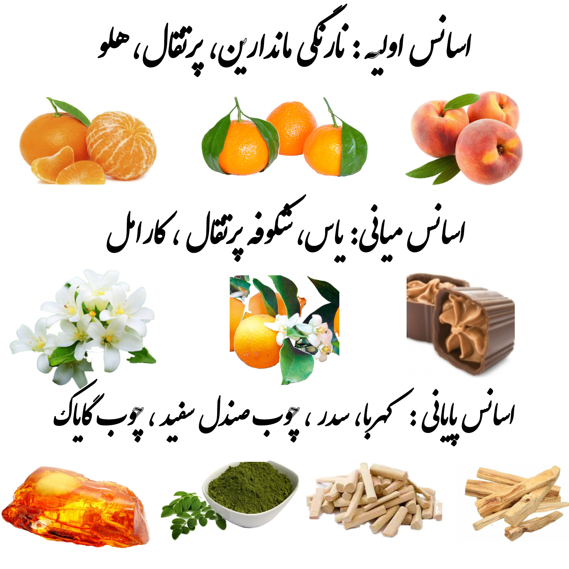 اسانس اولیه : نارنگی ماندارین، پرتقال، هلو