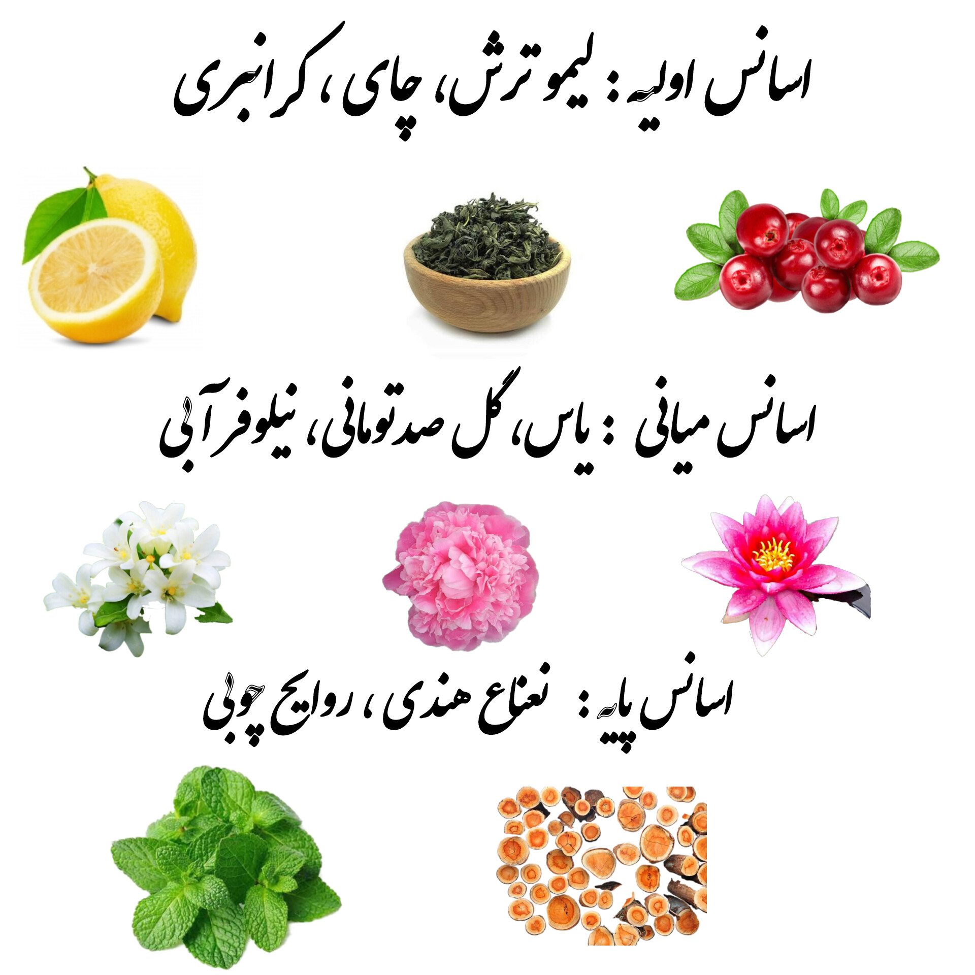 اسانس اولیه : لیمو ترش، چای ، کرانبری.