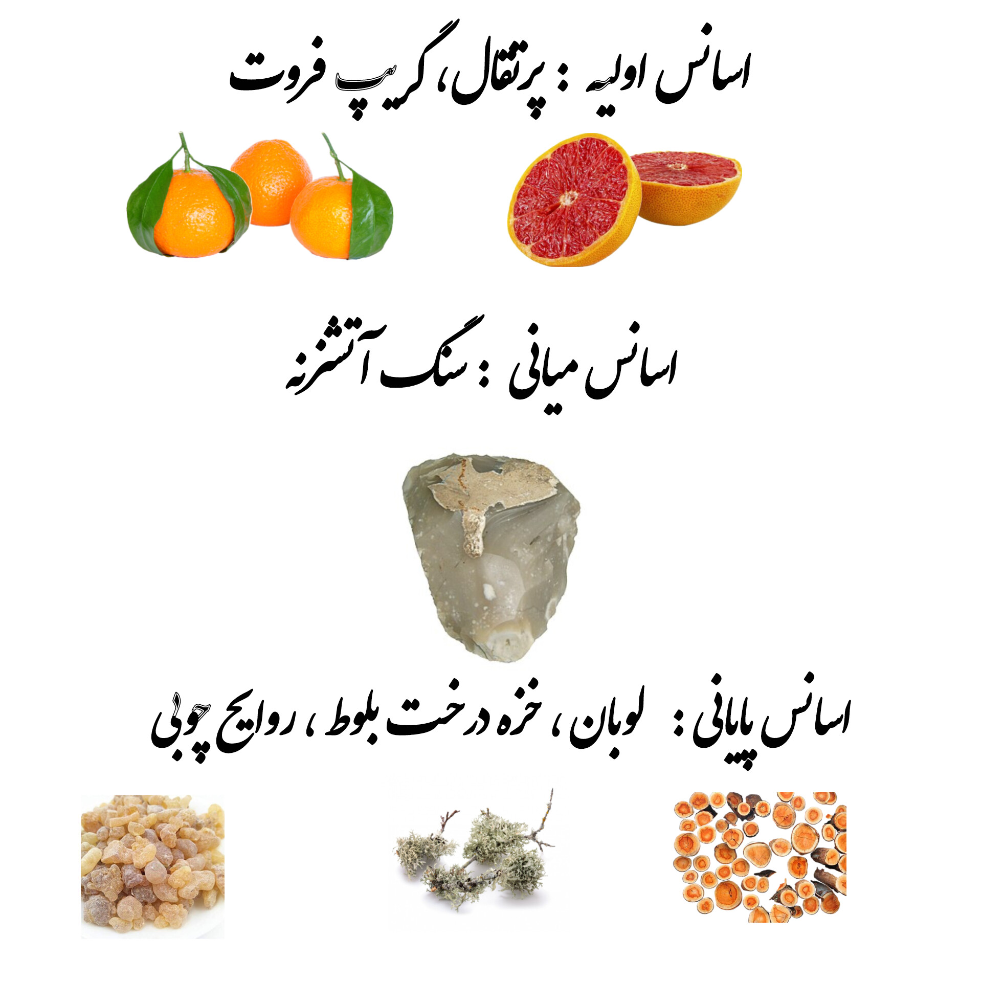 اسانس پایانی : لوبان ، خزه درخت بلوط ، روایح چوبی