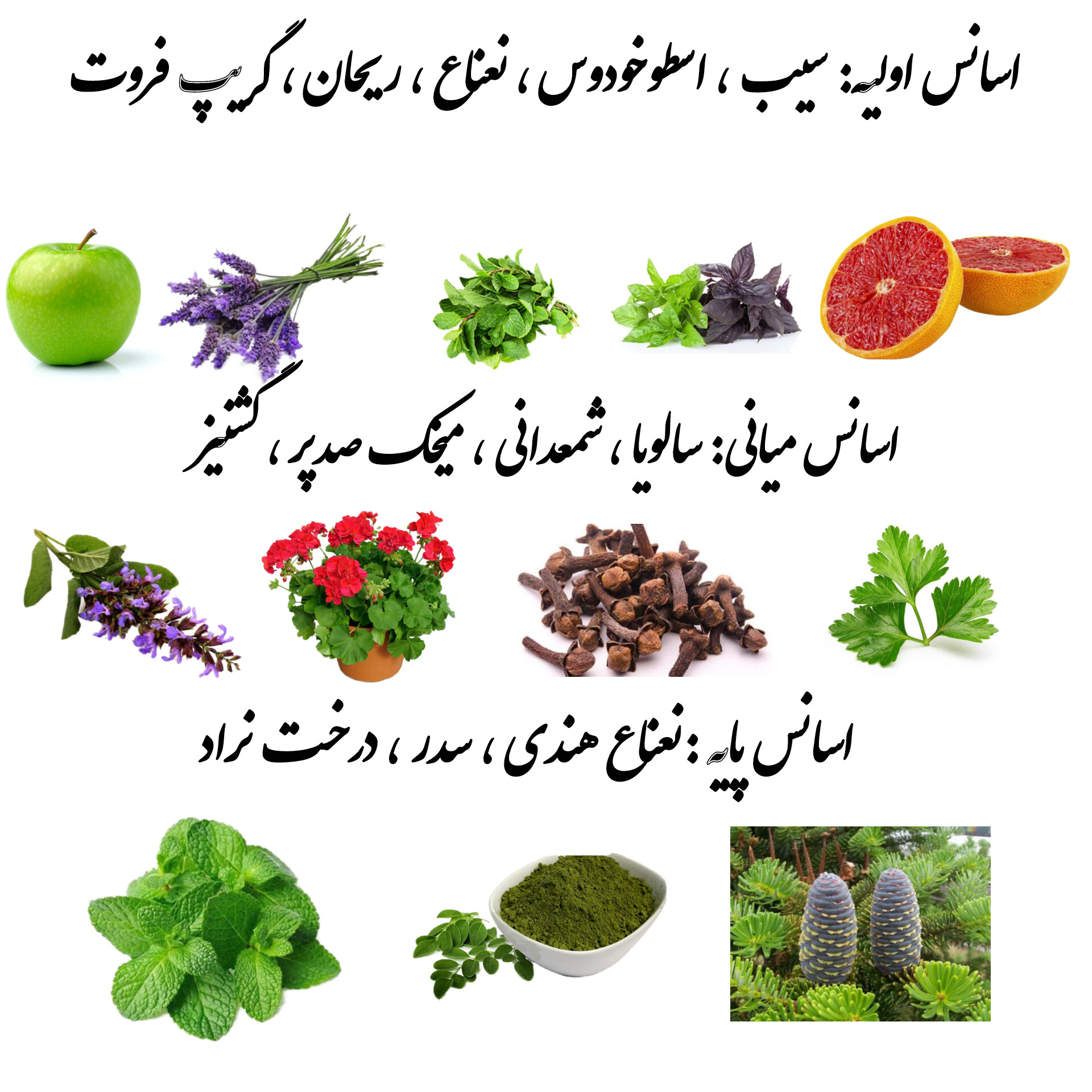 اسانس اولیه : سیب ، اسطوخودوس ، نعناع ، ریحان ، گریپ فروت.