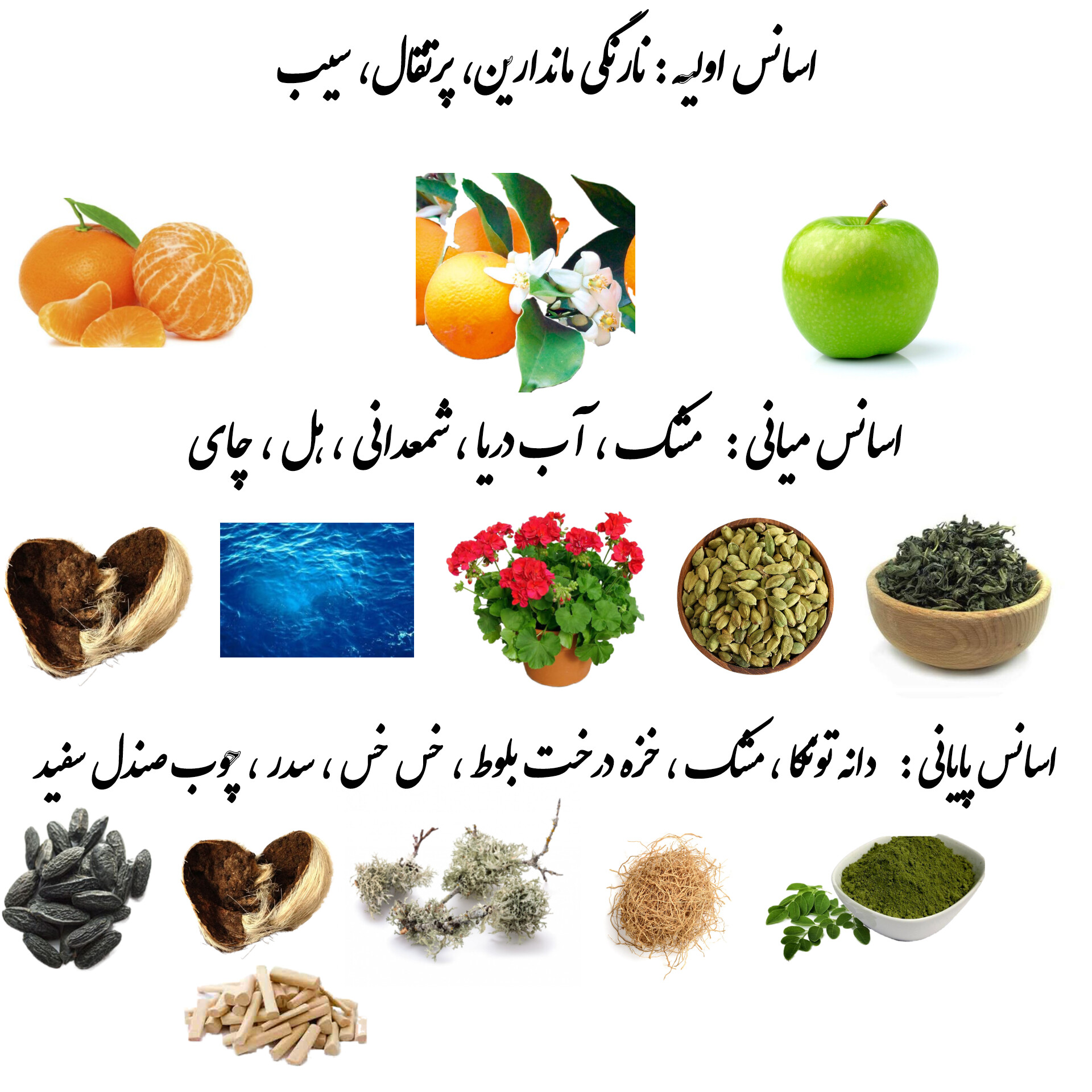 اسانس پایانی : دانه تونکا ، مشک ، خزه درخت بلوط ، خس خس ، سدر ، چوب صندل سفید.