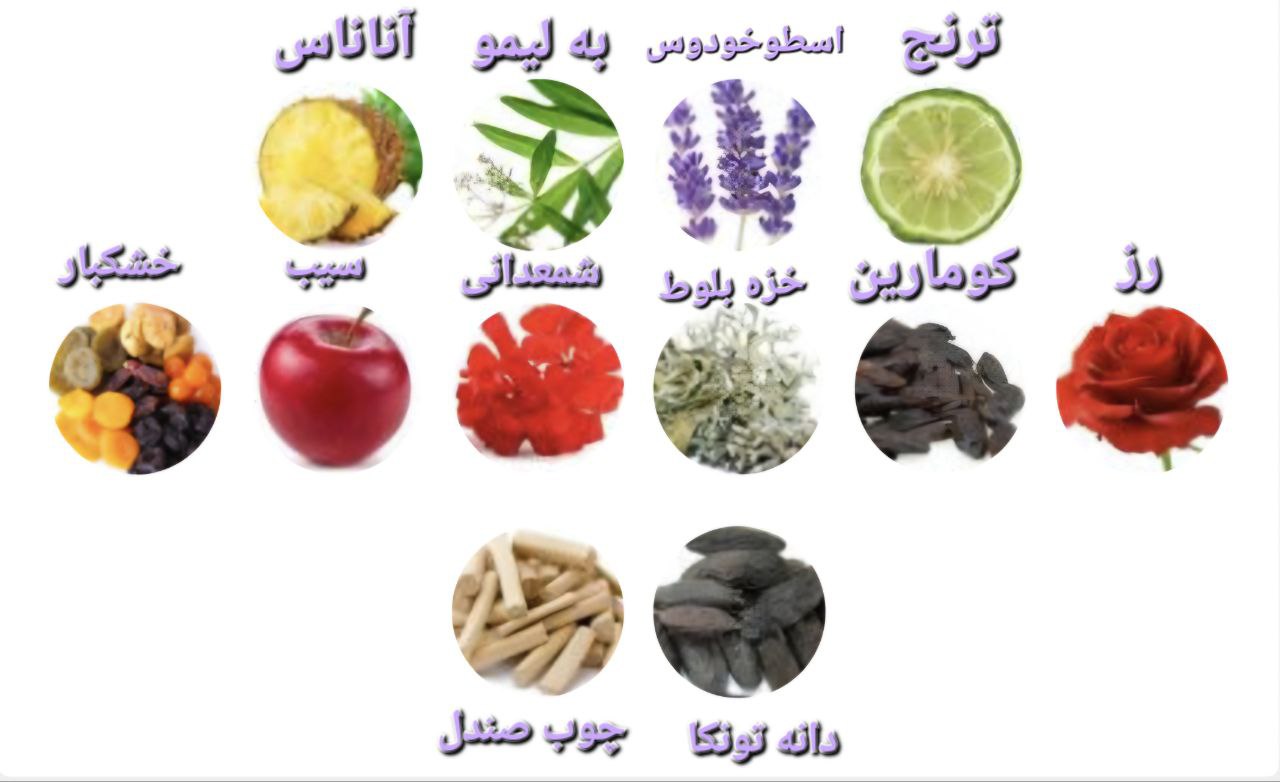 اسانس اولیه : ترنج ، اسطوخودوس ، به لیمو، آناناس
