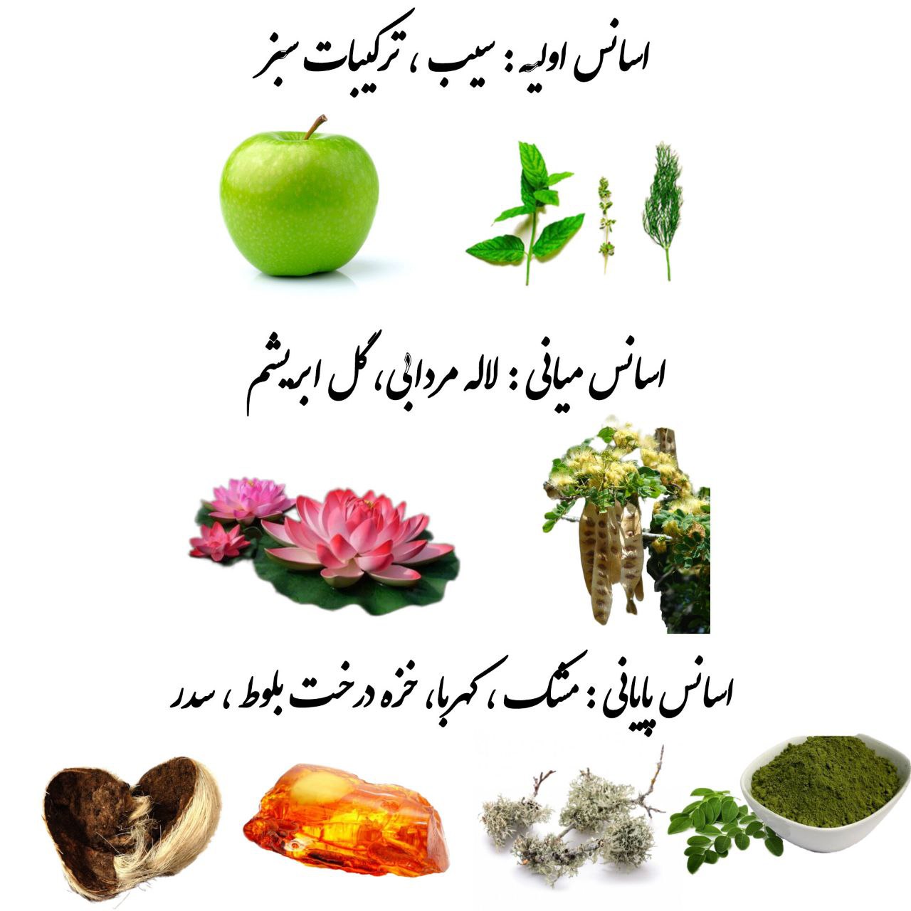 اسانس پایه مشک ، کهربا، خزه درخت بلوط ، سدر