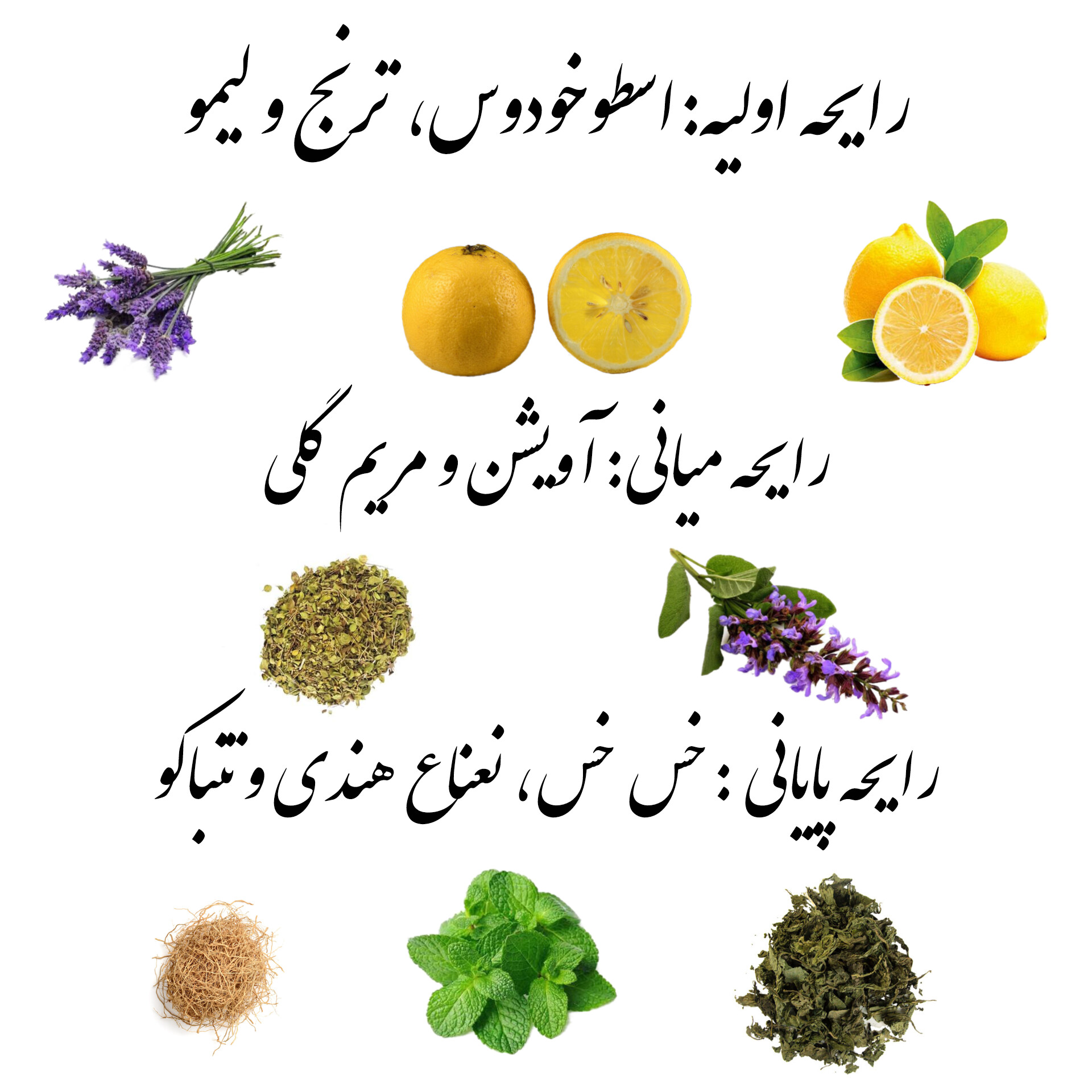 رایحه اولیه:اسطوخودوس، ترنج و لیمو