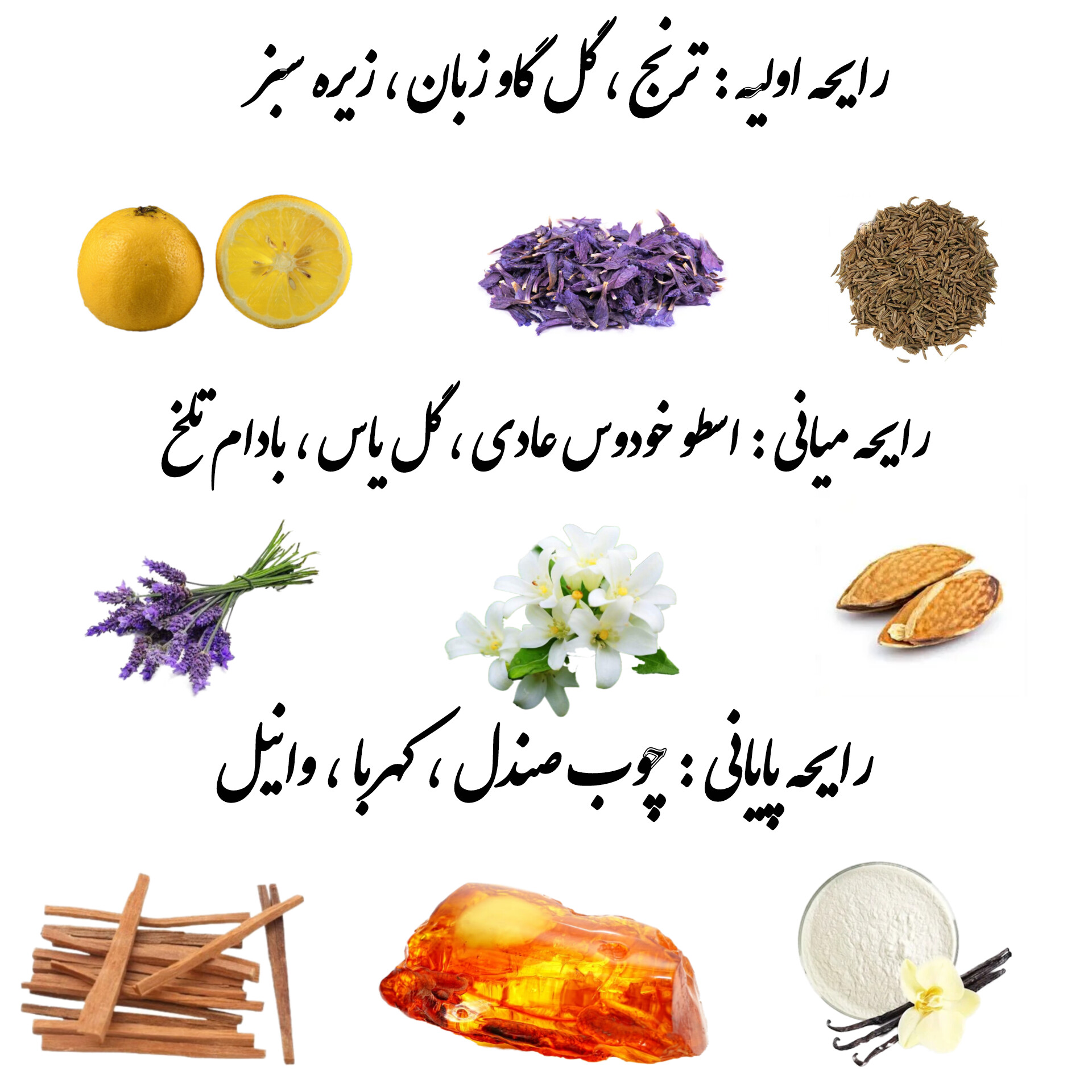 رايحه اوليه : ترنج ، گل گاو زبان ، زيره سبز.