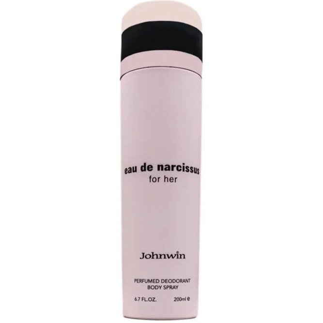 اسپری خوشبوکننده بدن جکوین Eau de Narciso دارای فرمول دئودورانت برای خنثی سازی بوی عرق به همراه رایحه عطر زنانه نارسیسو فور هر می باشد. اسپری بدن نارسیسو جکوین دارای رایحه مشکی است و نت های آغازین آن شامل گل رز و هلو می باشد. در میانه مسیر بویایی نت های مشک و کهربا قرار دارند. نت های پایانی این رایحه شامل نعناع هندی و چوب صندل می باشد.
