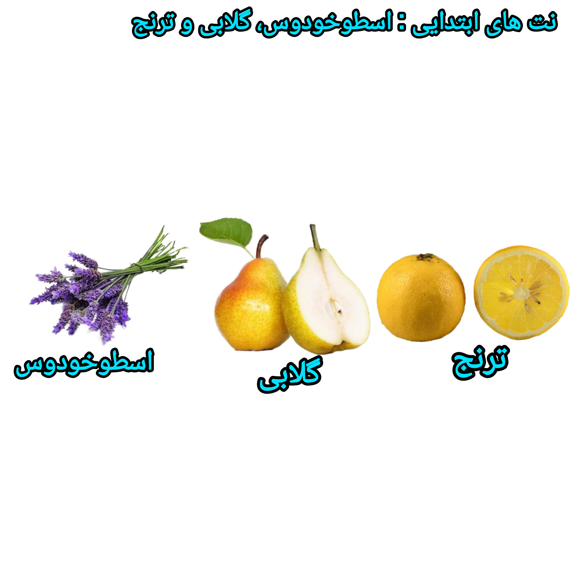 نت های ابتدایی : اسطوخودوس، گلابی و ترنج.