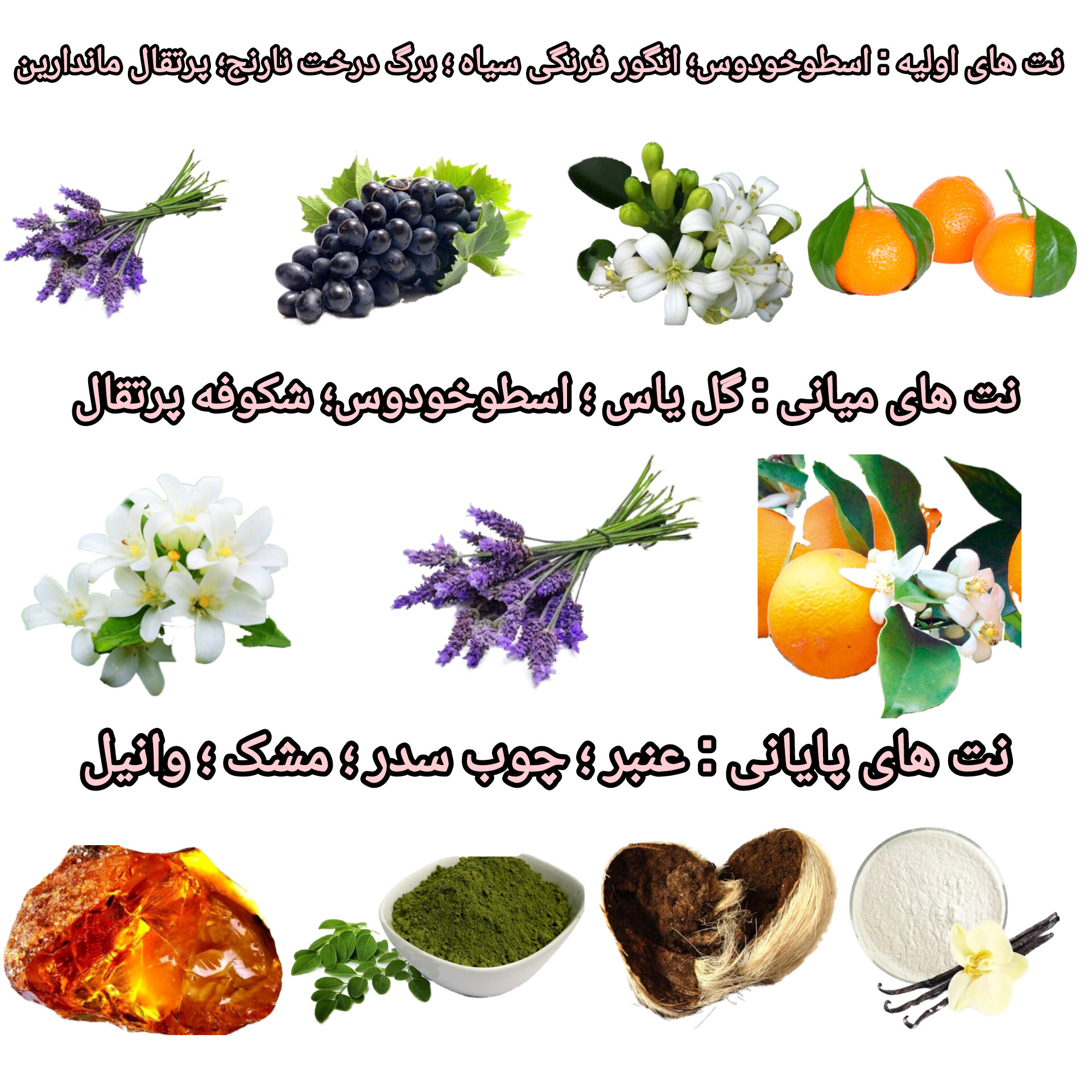 نت های پایانی : عنبر ؛ چوب سدر ؛ مشک ؛ وانیل