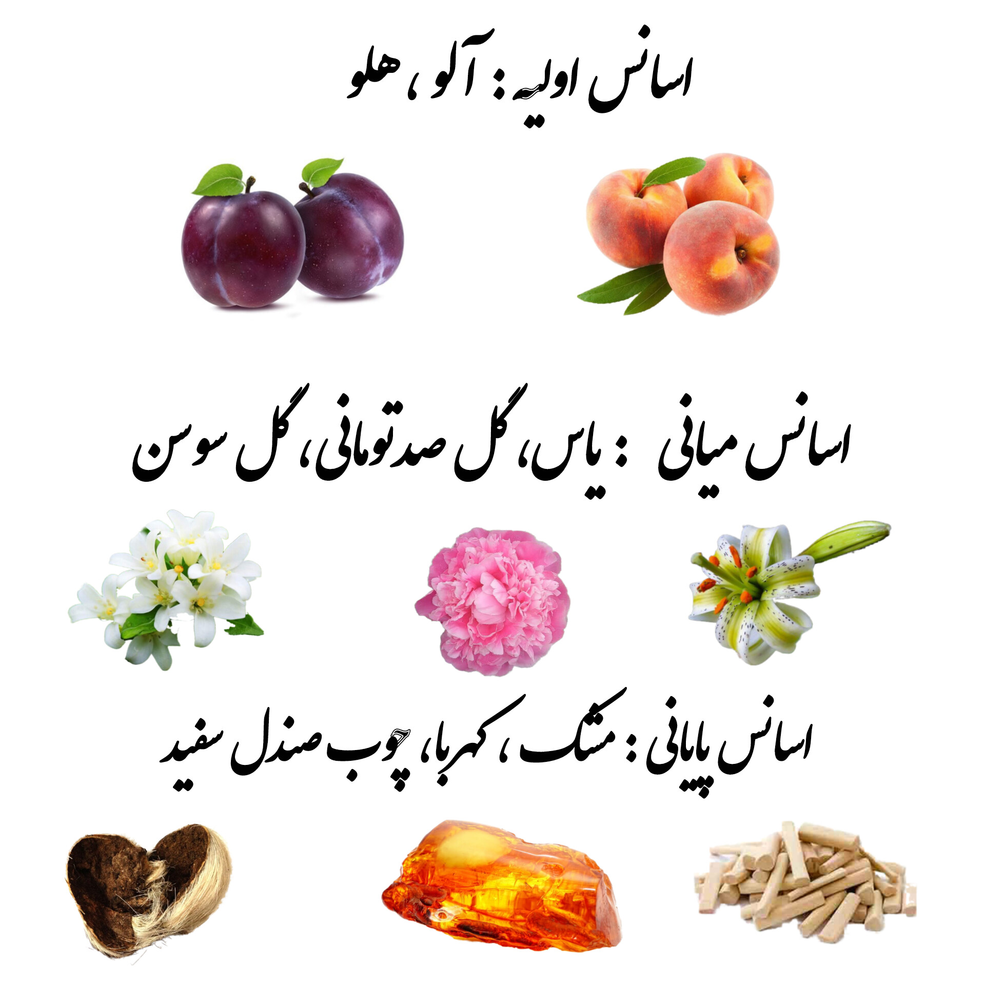 اسانس میانی : یاس، گل صدتومانی، گل سوسن