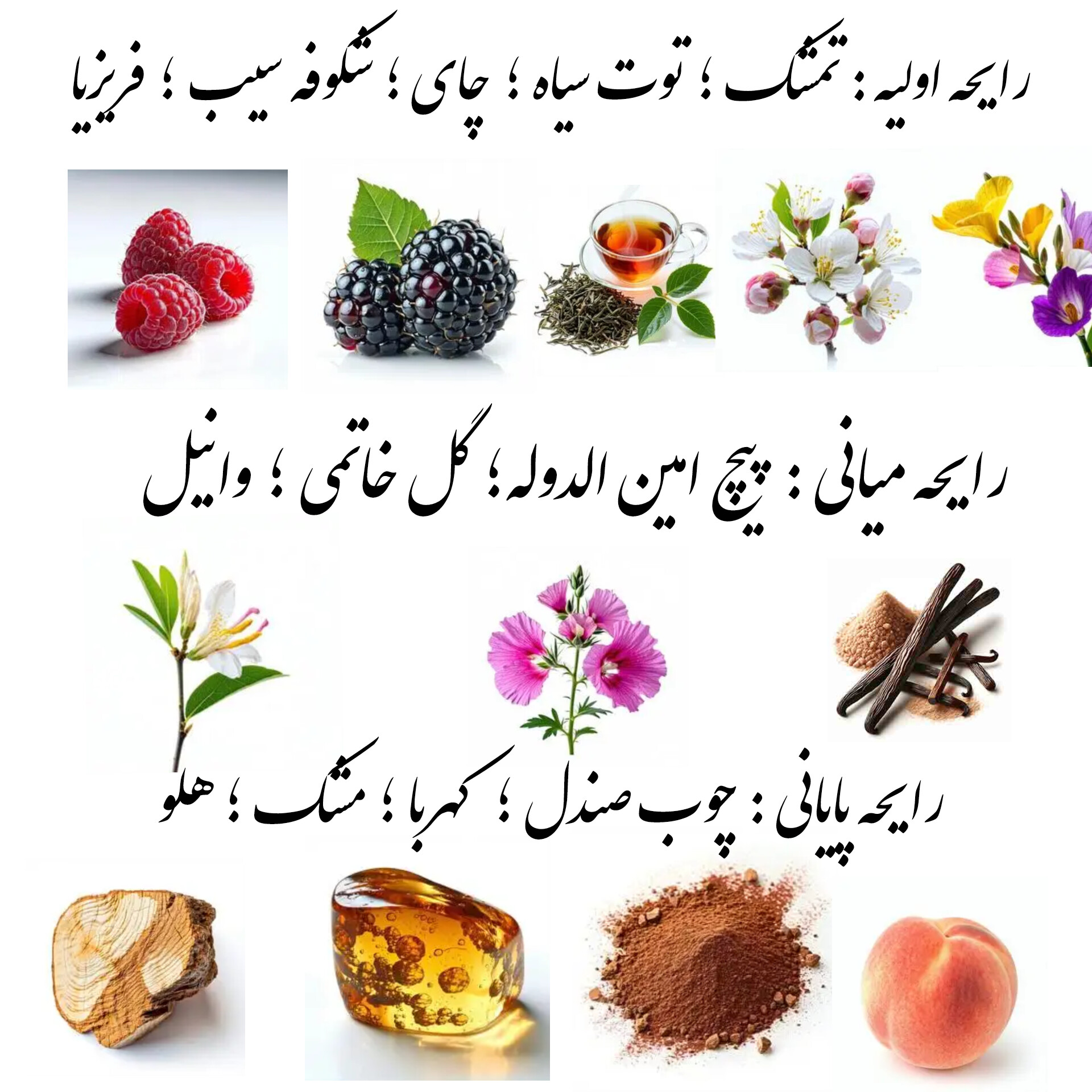 نت های انتهایی : چوب صندل, عنبر, مشک, هلو